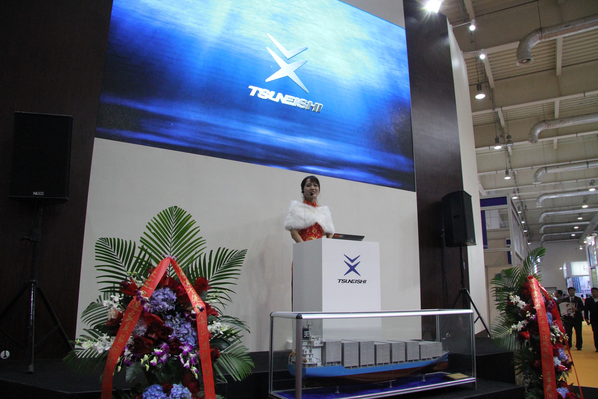 展會期間,常石舟山還在現(xiàn)場播放了新船型的宣傳視頻,介紹大型豪華郵輪的內(nèi)部構(gòu)想圖,并展示開發(fā)船型時用于水槽試驗(yàn)的木船模型和16種螺旋槳模型。此外,現(xiàn)場還舉辦主題演講,介紹了常石舟山與地區(qū)的合作經(jīng)營發(fā)展現(xiàn)狀和對未來的展望。